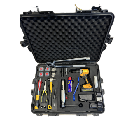 產(chǎn)品由專用特種鉆頭螺絲、鎖芯拔除器、鎖芯切斷器、換向扳手、專用電鉆、電池、充電器、鎖舌轉(zhuǎn)動器、除銹潤滑劑、定位器、輔助工具、LED感應(yīng)照明燈及專用密碼工具箱等組成。