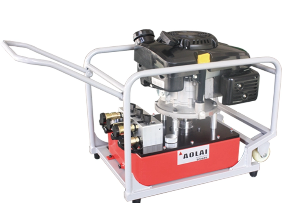 液壓機動泵是利用汽油發動機產生的動力,通過曲軸轉動產生的離心力,驅使油箱內的液壓油為破拆工具提供能量。這種液壓機動泵作為液壓動力源,主要應用就是與專業破拆工具配套使用;結構緊湊,機動性強、輕便、外形美觀,油管可快速鏈接工具,發動機的冷卻條件好。它分有單段式與雙段式,適用于千斤頂,穿孔器、電纜剪、螺母破切器、銅排彎曲、切斷等工具。